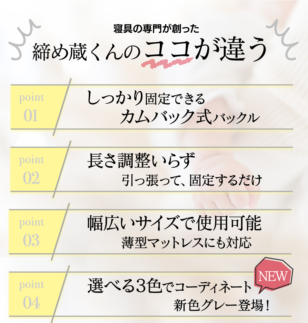 | 製品名: | マットレスバンド 締め蔵くん |