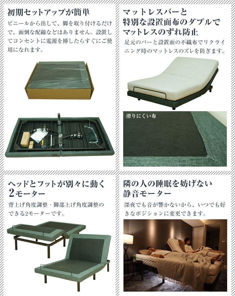 ヘッド部分フット部分無段階リクライニング