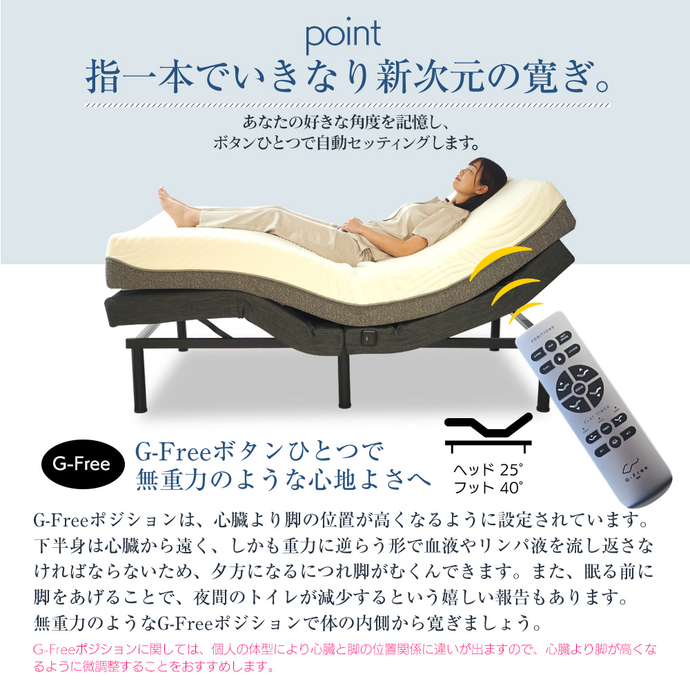 | 製品名: | 【マットレス付】 EN401FA 電動ベッド シングル セミダブル ダブル G-FREE004 アジャスタブルベッド |