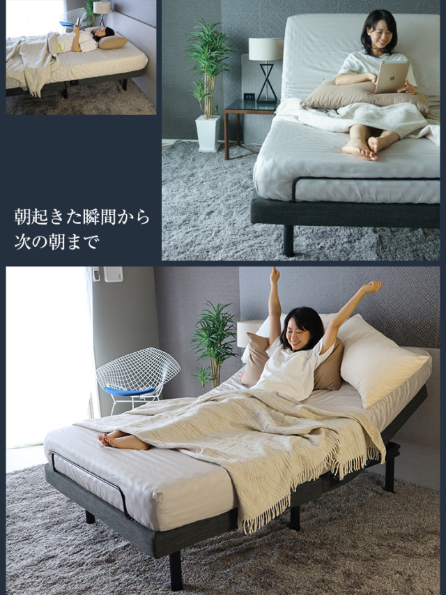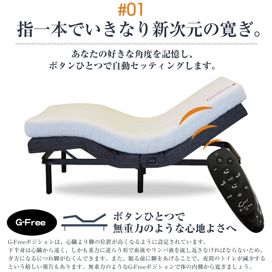 ベッド革命 その先の快適へ あなたにフィットする次世代な睡眠<br>無段階リクライニング USBポート ワイヤレスリモコン(RF無線タイプ:周波数2.4Ghz) フットライト付き 専用マットレス付き