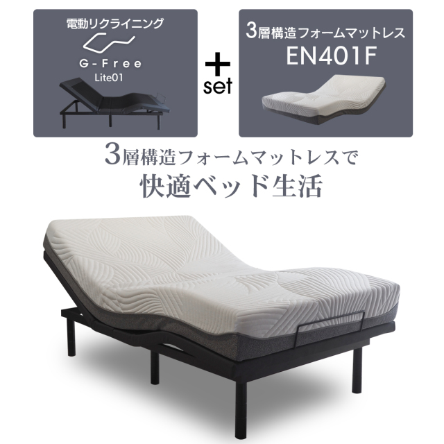 | 製品名: | 電動ベッド マットレス付き G-FreeLite アジャスタブルベッド EN401F 3層フォームマットレス 送料無料 電動リクライニング |