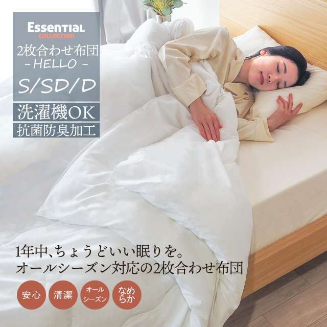 ●送料無料 ※北海道・沖縄・離島は別途送料を頂いております。 ●この「2枚合わせ掛布団」は、オールシーズン対応でとっても便利!抗菌防臭加工が施されているので、いつでも清潔で快適な眠りをサポートします。洗濯機で丸洗いOKだから、お手入れも簡単です。夏は軽やかに、冬は暖かく、季節に合わせて使い分けられるのが嬉しいポイント。来客用にもぴったりなコンパクトさで、収納もラクラク。快適な眠りをお届けするこの掛布団で、毎晩の眠りがもっと楽しみになりますよ!