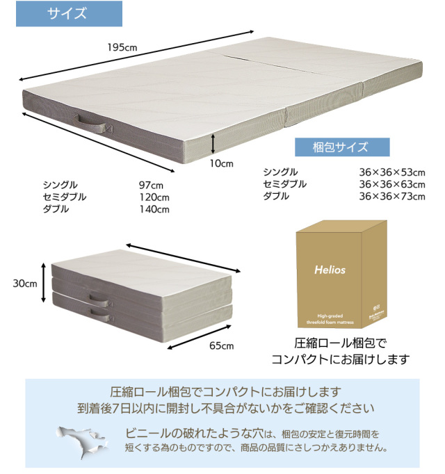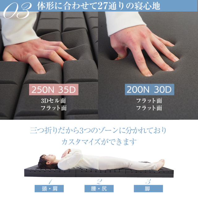 | 製品名: | マットレス 三つ折り 高反発 ウレタン 3Dセル 硬め 敷布団 体圧分散 寝姿勢 薄型 マットレス シングル セミダブル ダブル Helios ヘリオス マット |