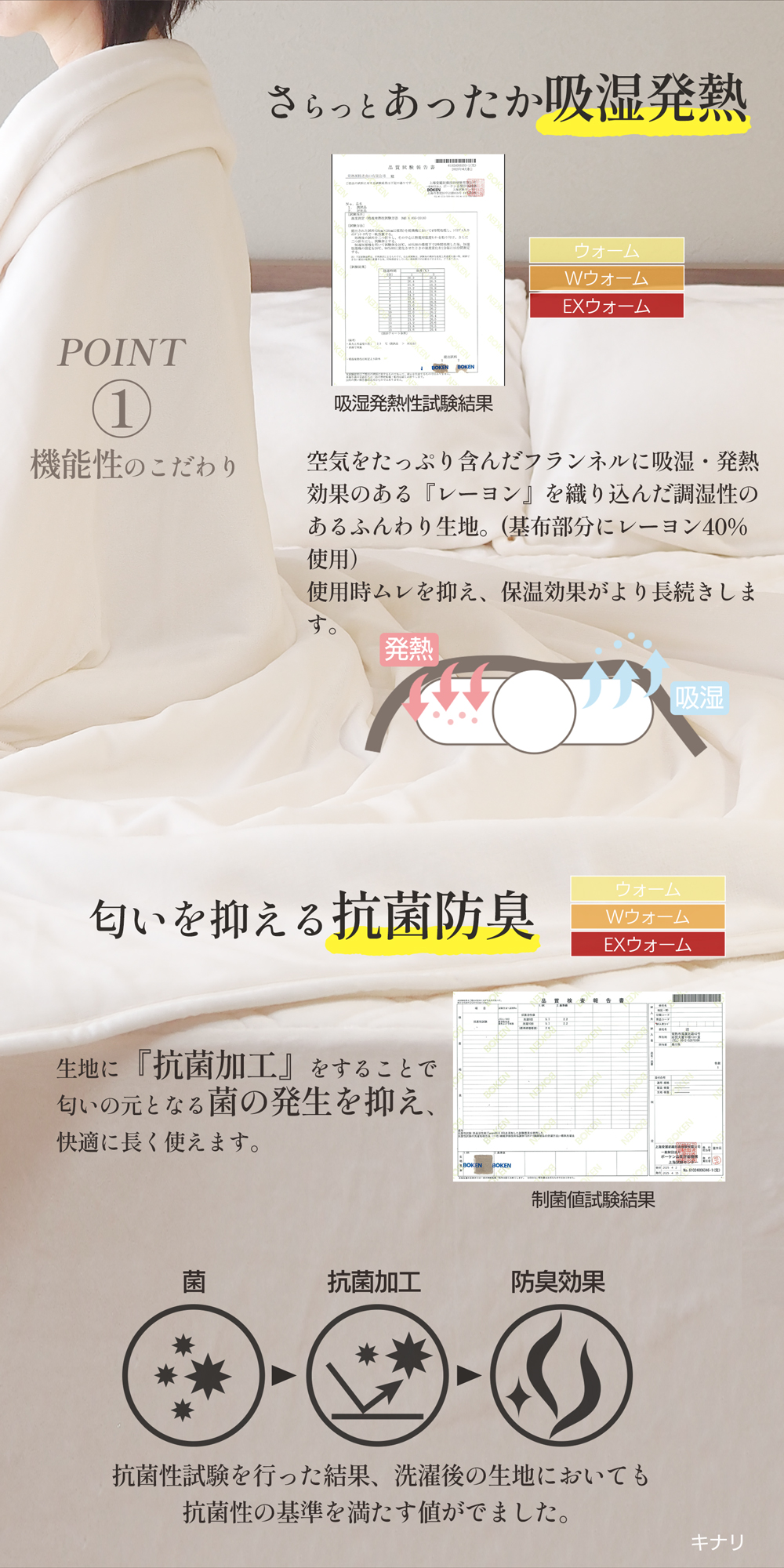 このウィンターコレクションの毛布は、寒い季節にぴったりのアイテムです。吸湿発熱機能で、体温をしっかりと保ち、快適な暖かさを提供します。さらに、抗菌防臭加工が施されているので、清潔さをキープできます。ふんわりとした肌触りが心地よく、リラックスした時間を過ごせます。シングルからダブルまでのサイズ展開で、ハーフサイズのブランケットもあります。ベッドやソファでの使用に最適です。