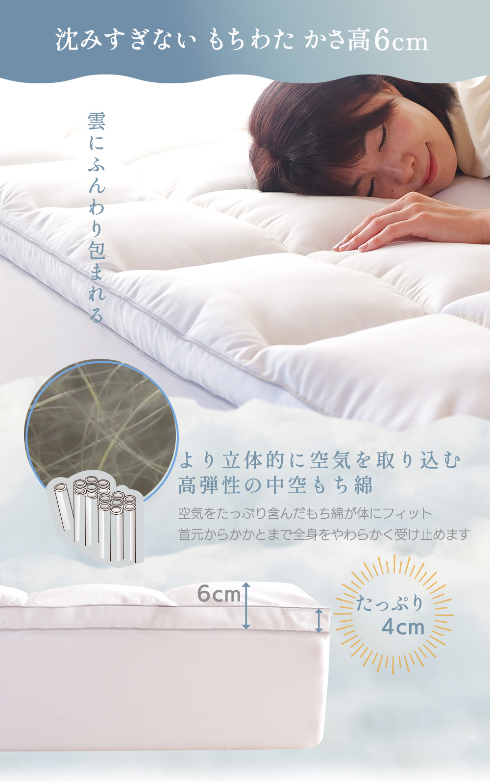 | 製品名: | ピロートップパッド 雲のベール ふわふわ トッパー ベッドパッド |