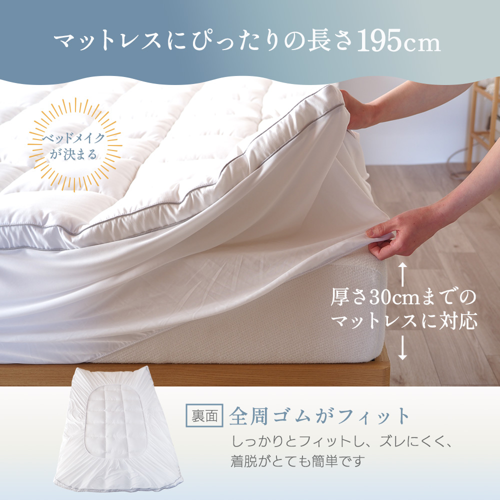 ダブル:幅140×長さ195×トッパー厚4(最大6)×マチ35(マット厚30cmまで対応)cm