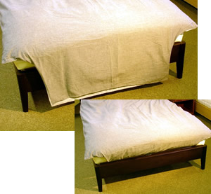 ![]() そのまま垂らすと背の高い方や足もとの保温を気にされる方に有効です。このようにマットレス下に織り込んでもOKです。 |