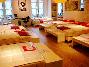 そういえばパリのギャラリーラファイエット(デパート)のベッド売り場でも脚元にカウチをデザインしたテーブルが置かれていました。