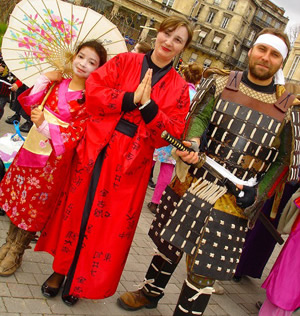 中でも日本を扱ったグループはどこから資料を持ってきたのか力の入ったコスプレで、武士、姫、花娘、力士、足軽など盛りだくさん。