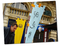 角には生け花、女の子はサクラの枝を持ち、紙吹雪でお祝い、と日仏友好に力を貸しておりました(といっても日本人はメンバーにはおりません)