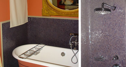 ![]() バスルームのバスタブはレトロなデザイン、シャワーは別に付いていて困りません。 |