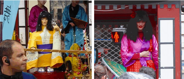 - かわいいだけで済まないのがこのカーニバルで、この山車の前の方にはこんな人形が置いてあり、クルクルまわっています。(不気味)