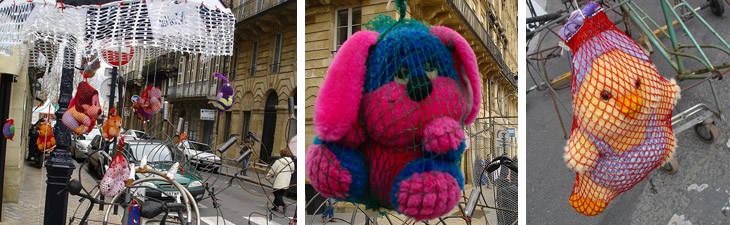 - ぬいぐるみ号(網にいれたぬいぐるみが吊るしてある、耳は網から出ている)